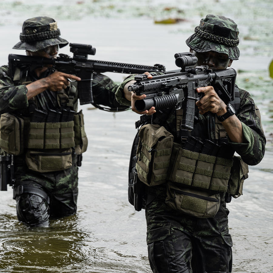 ซองแม็กกาซีน 556 3 ช่อง ที่สามารถใส่ kydex inner เพื่อล็อกแม็กกาซีนให้แน่นหนา และ อีกทั้งยังสามารถร้อยสายยางยืด รัดด้านบนเพื่อเป็นการล็อก 2 ชั้น ป้องกันการสูญหายของแม็กกาซีนได้อีกด้วย
