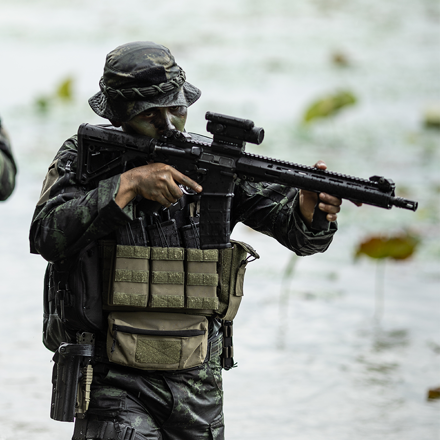 ซองแม็กกาซีน 556 3 ช่อง ที่สามารถใส่ kydex inner เพื่อล็อกแม็กกาซีนให้แน่นหนา และ อีกทั้งยังสามารถร้อยสายยางยืด รัดด้านบนเพื่อเป็นการล็อก 2 ชั้น ป้องกันการสูญหายของแม็กกาซีนได้อีกด้วย